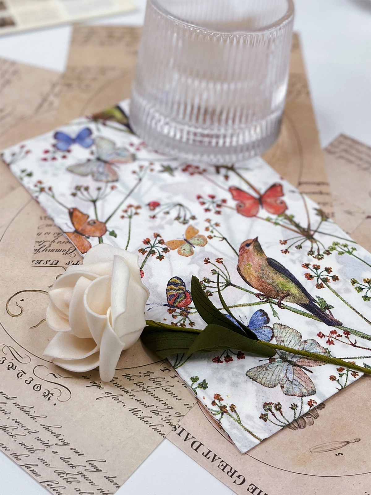 Tieto papierové obrúsky pre vtáky a motýľa Dekoratívne papierové utierky pre hostí s potlačou kvetov sa dokonale hodia k vašim večierkom a oslavám, ako sú svadby, výročia, rodinné oslavy, narodeniny, bábätká, záhradné čaje a pikniky, dekoratívne papierové obrúsky zatraktívnia vaše večierky. .