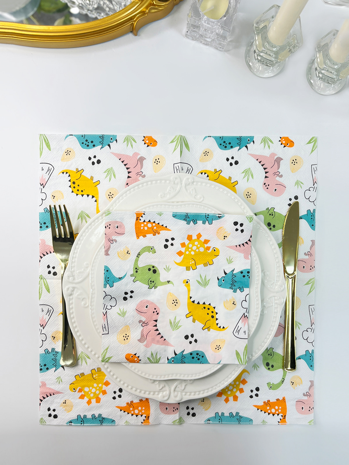 Farebné a živé potlače dinosaurov robia tieto papierové obrúsky vynikajúcimi na párty alebo narodeninové oslavy s tematikou dinosaurov, ktoré budú deti zbožňovať.