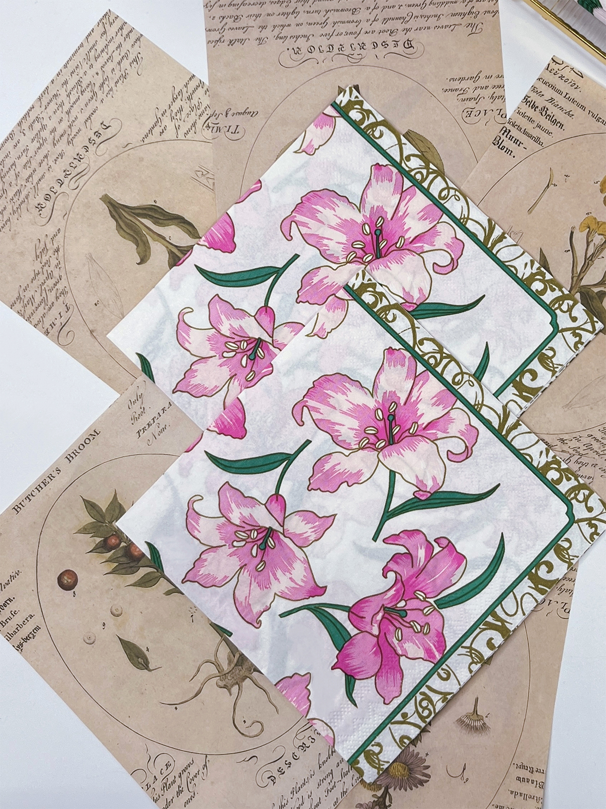 Tieto papierové obrúsky Spring Lily Floral Party, ktoré rozžiaria váš večierok a dajú sa použiť pri rôznych príležitostiach, ako sú dámske narodeninové oslavy, svadby, vintage čajové večierky, oslavy výročia, obedy alebo švédske stoly, možno ich použiť aj na decoupage.