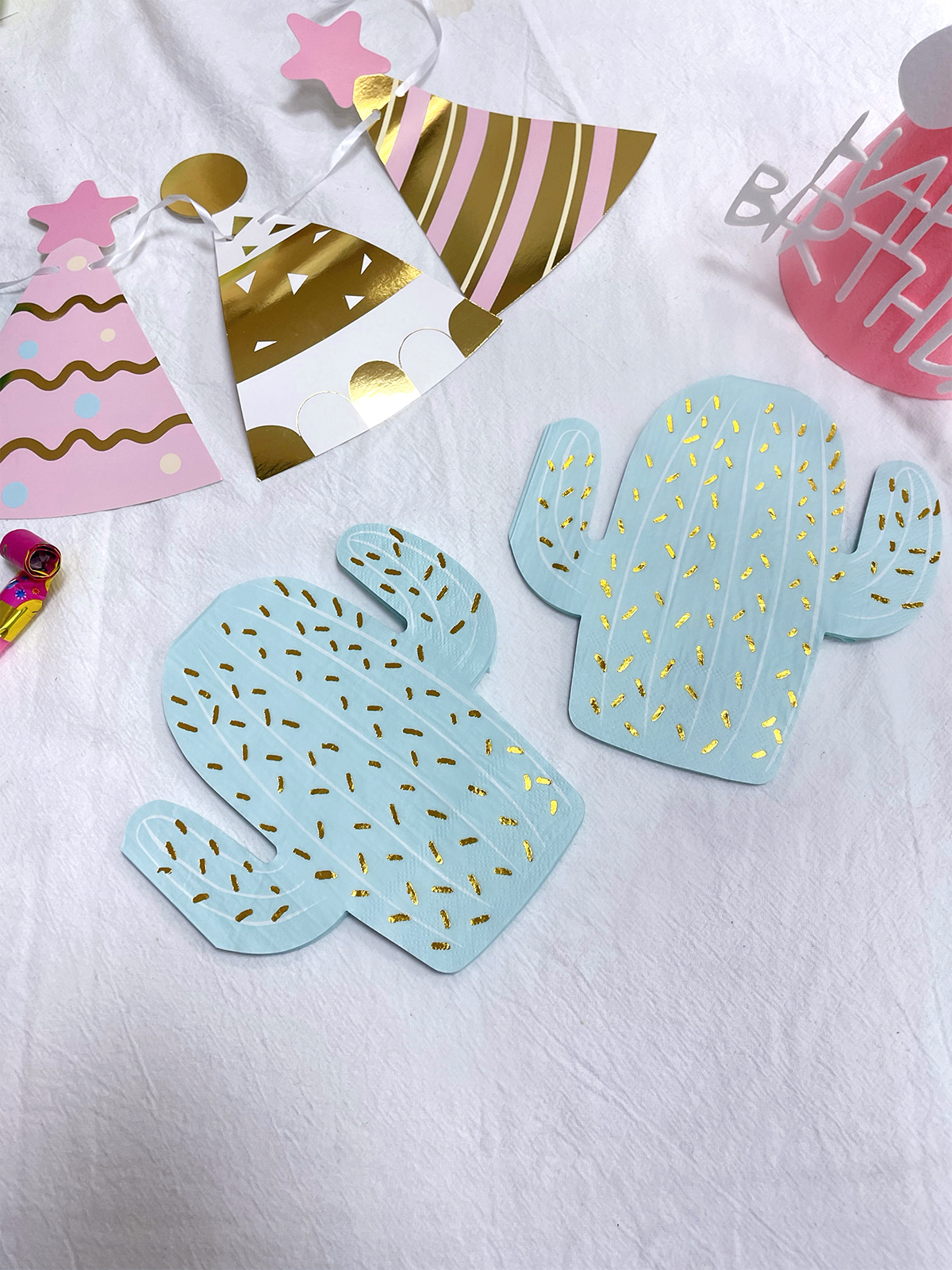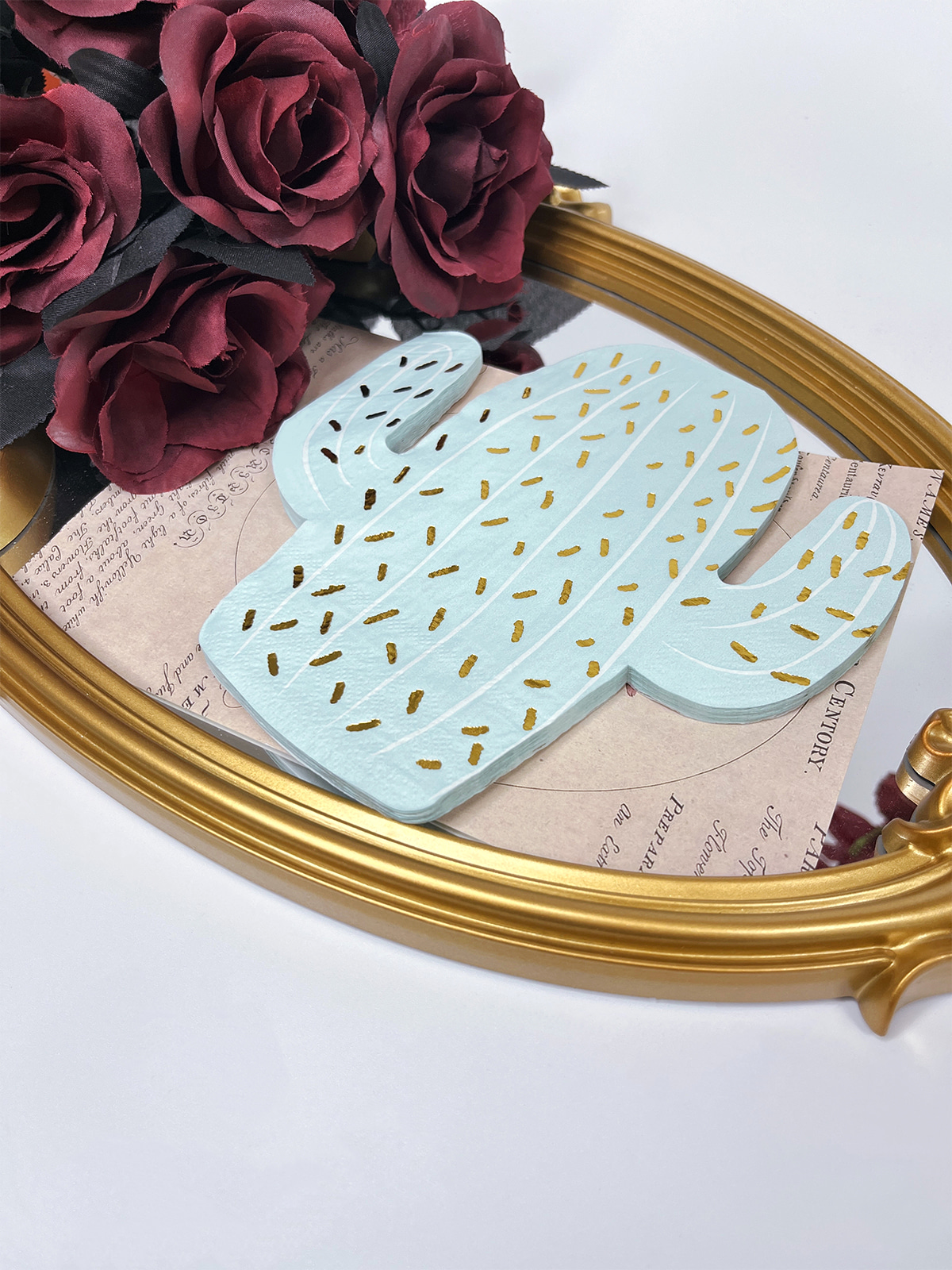 Vysekávané kaktusové papierové obrúsky s líniami zlatej fólie vyžarujú vitalitu a jas, vďaka čomu sú vynikajúcim materiálom na párty pre rodinné stretnutia aj použitie v reštaurácii.